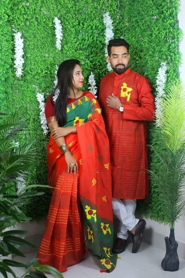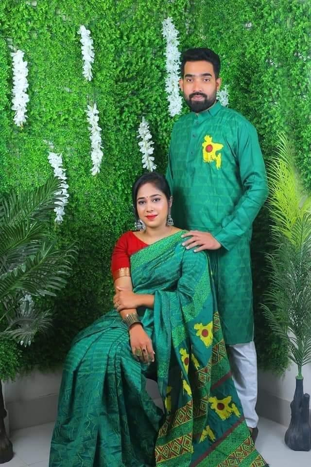 Stylish New Collection Saree & Panjabi koti Combo Couple Dress